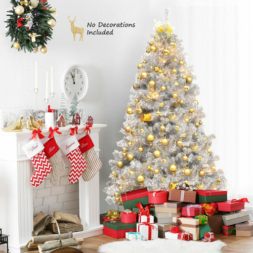 Bring a festival atmosphere to your home with this silver Christmas tree. With 1036 branch tips, this 6ft, bushy, sparkly Christmas tree will be a great addition to decorate at Christmas time. Crafted from premium PVC silver tinsel, that is fire-resistant, non-allergenic, and suitable for use many Christmas'. The metal stand is designed to hold the tree stable and can be used both indoors or outdoor. The branches are connected to the trunk by hinges making set up effortlessly in a short time. This silver tinsel tree is an eye-catching addition to any home, office, shop, etc. Get it today! Ideal for home, office, shops, school, etc Silver tinsel design for an eye-catching tree 1036 branch tips for a bushy sparkly appearance Environmentally-friendly PVC material, crush resistant and durable Non-flammable and non-allergenic tinsel film for a safe environment Perfect for indoor and outdoor decoration Sturdy metal stand with anti-skid foot caps to ensure stability and balance The tree is divided into 3 sections with hinged branches for quick assembly and easy storage Suitable to be decorative with your favourite baubles. Specifications: Colour: Silver Material: PVC + Tinsel Film + Iron Overall Dimensions: 114 x 185 cm (Diameter x H) Number of Tips: 1036 Net Weight: 6kg Gross Weight: 7kg Package Includes: 1 x Silver Tinsel Christmas Tree 1 x Metal Stand 1 x Instruction manual