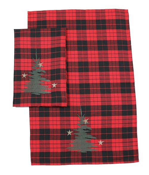 XD19886-Christmas Tree Decorative Tartan Towels 14 by 22-Inch, Set of
